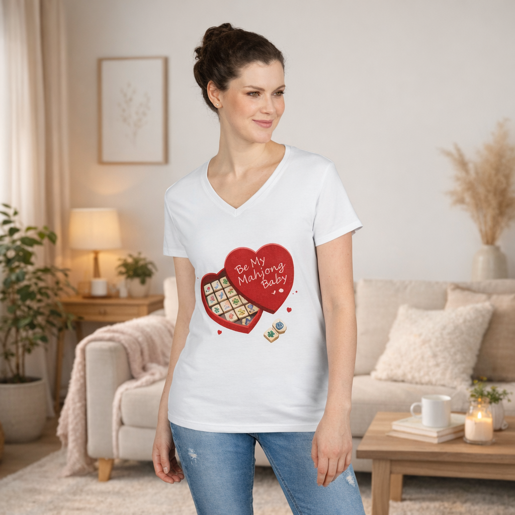Thrown With Love Classic Mahjong Women’s V-Neck T-Shirt