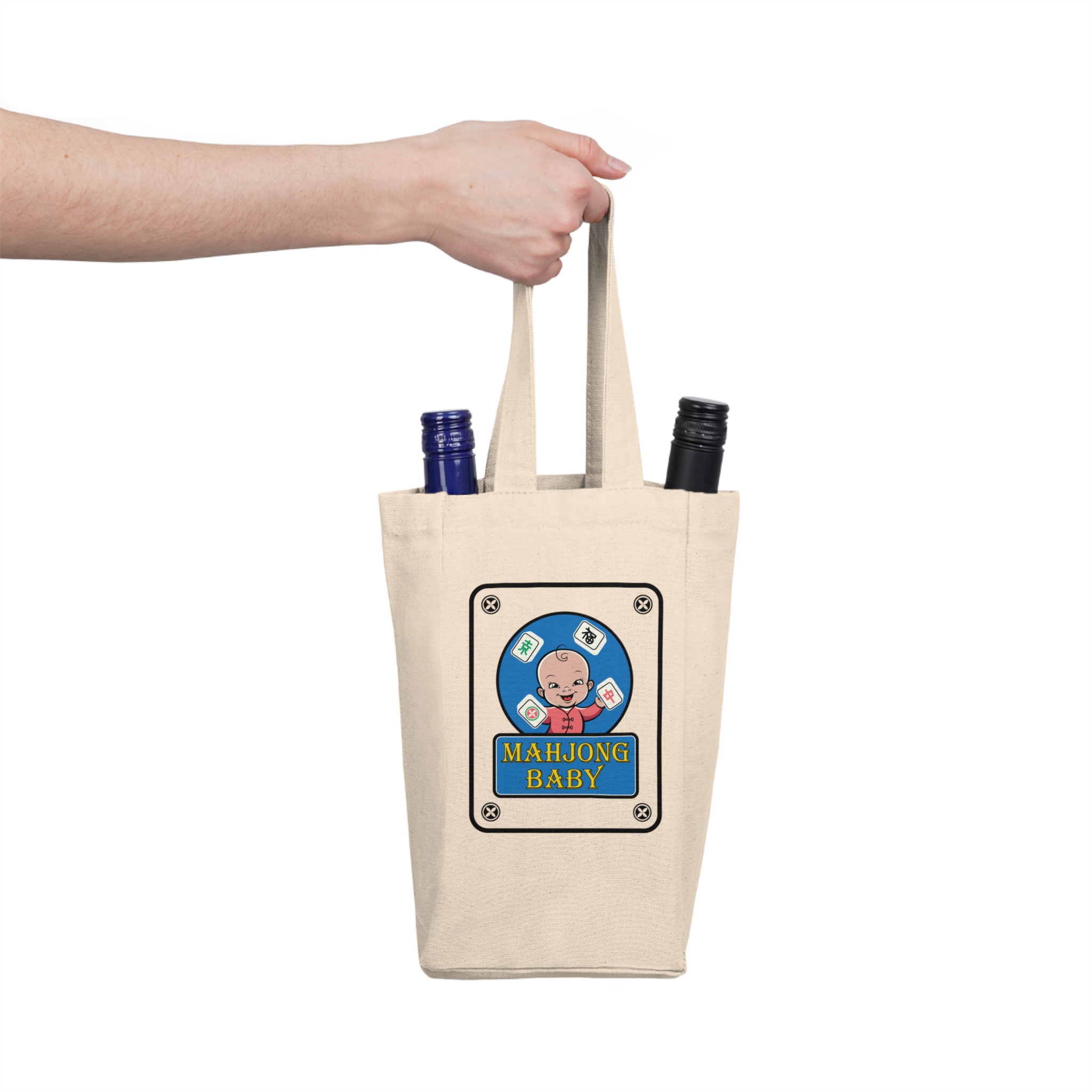 Mahjong Baby Double Wine Tote Bag | Novelty Two-Bottle Canvas Wine Carrier