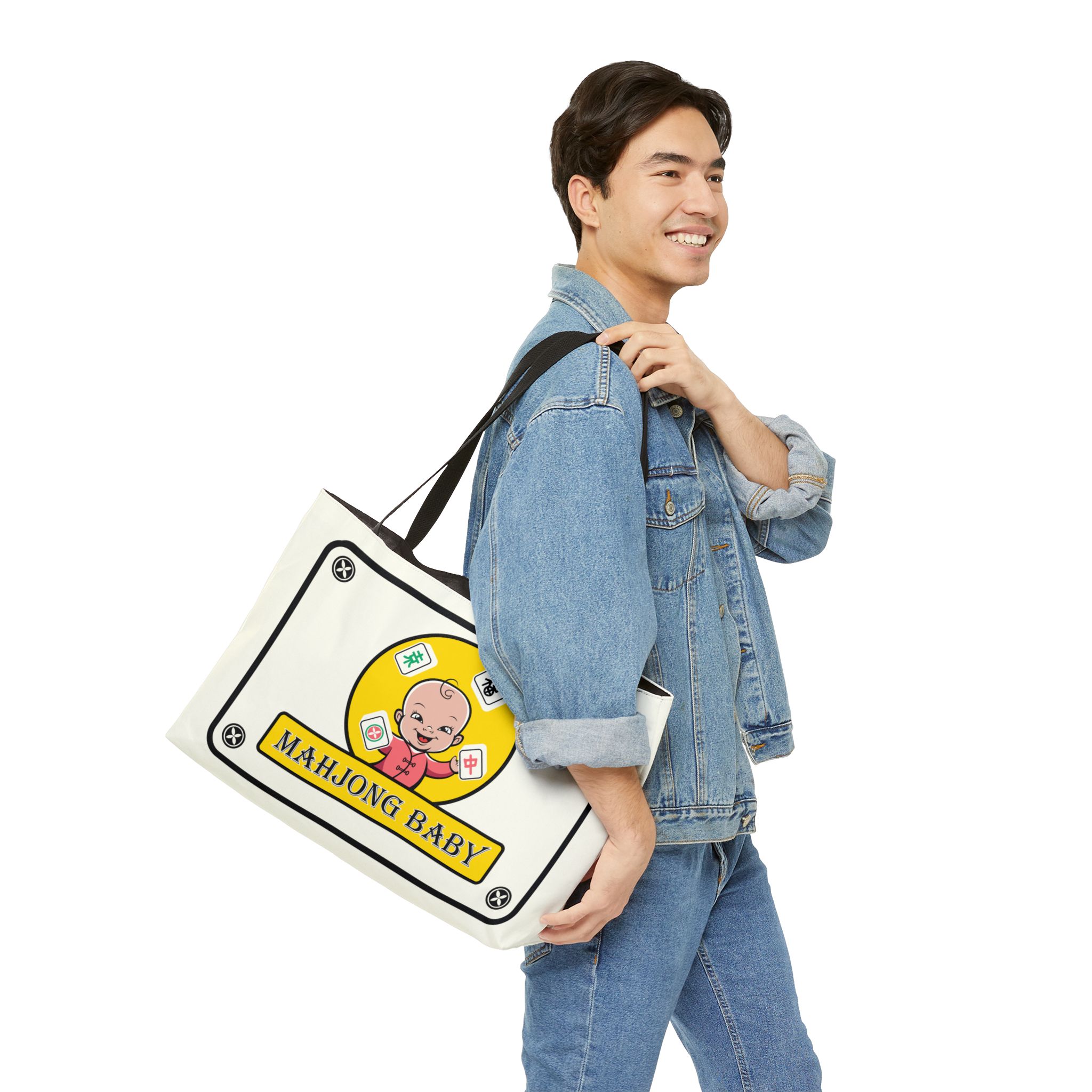 Mahjong Baby Tote Bag – Black | Cute Mahjong Tile Graphic Carryall in 3 Sizes