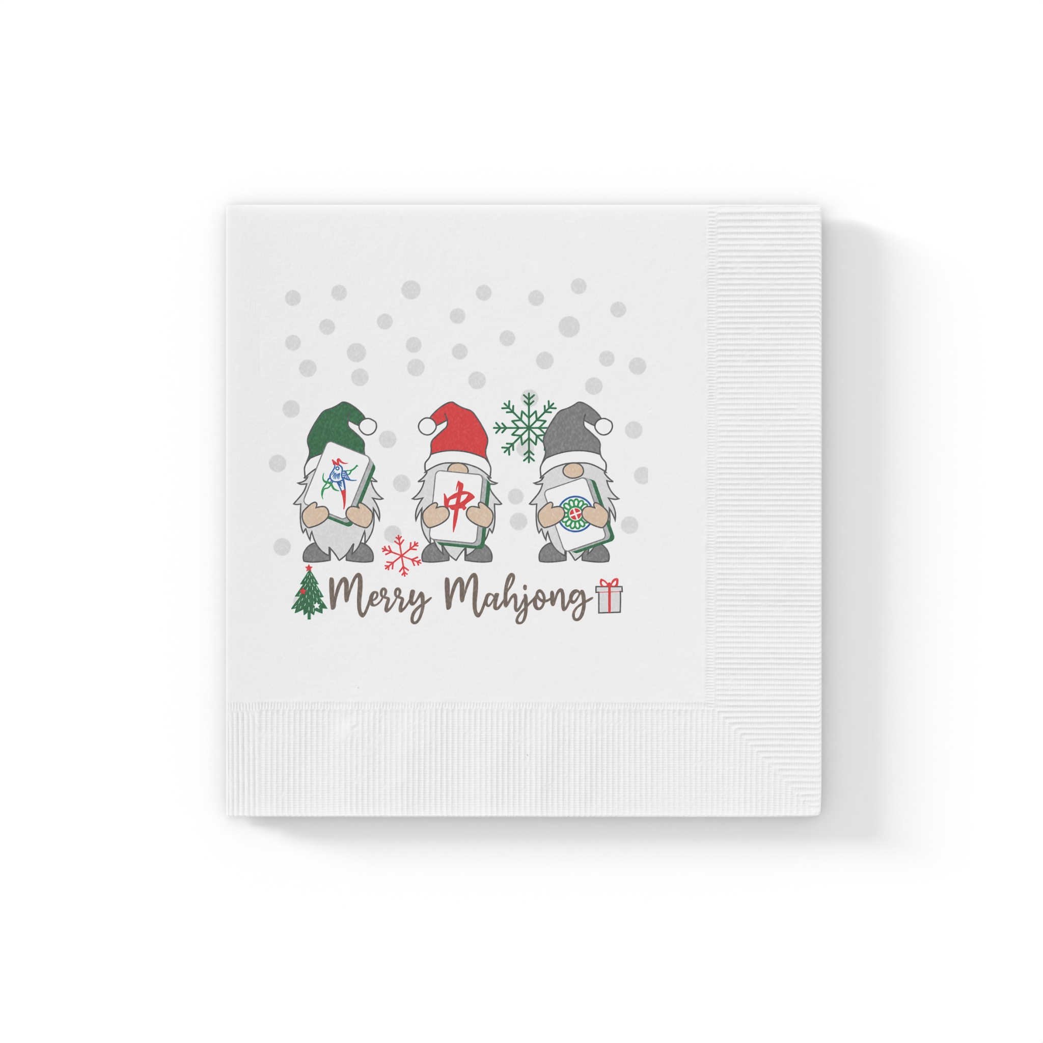 Merry Mahjong Winter Gnome Cocktail Napkins | Holiday Mahjong Party Napkins (50 or 100)