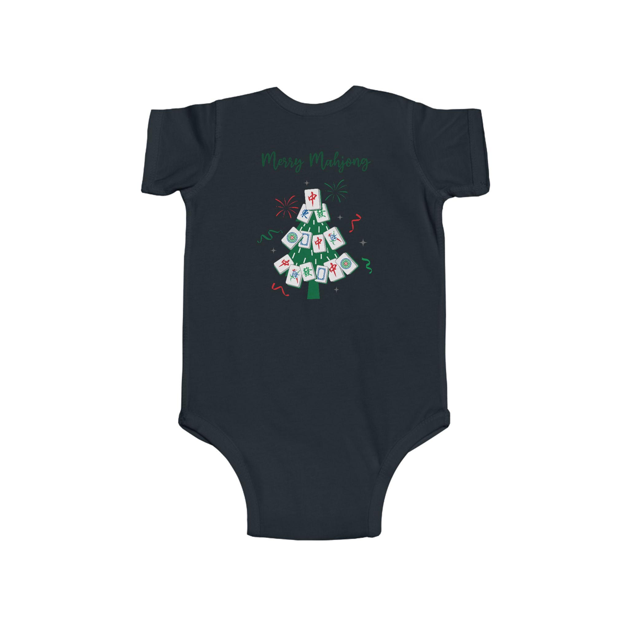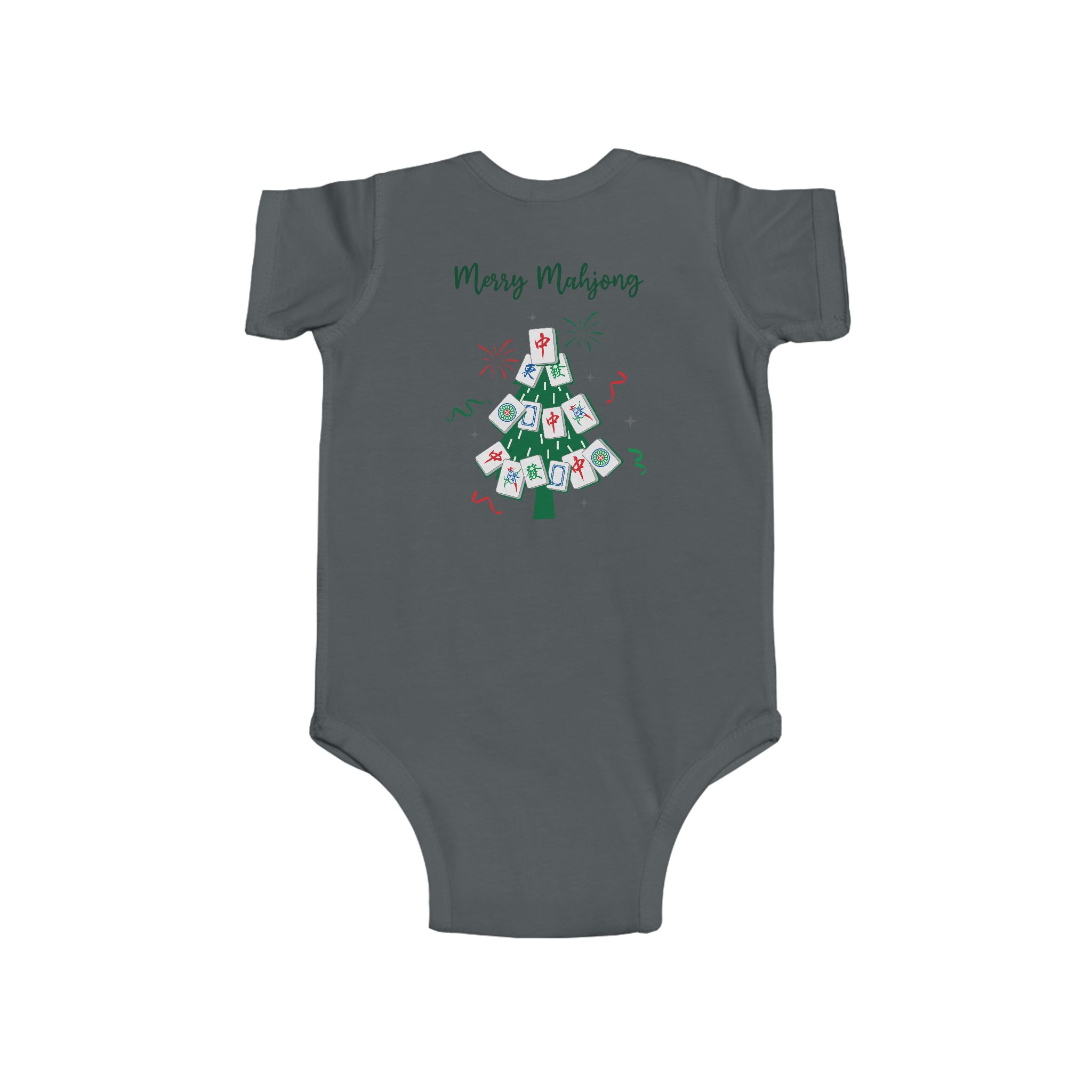 Side seams and ribbed binding help the bodysuit maintain its shape, while the matching snap closures make diaper changes quick and easy. Comfortable, durable, and full of whimsical Mahjong charm, this onesie brings joyful holiday spirit to every tiny moment.