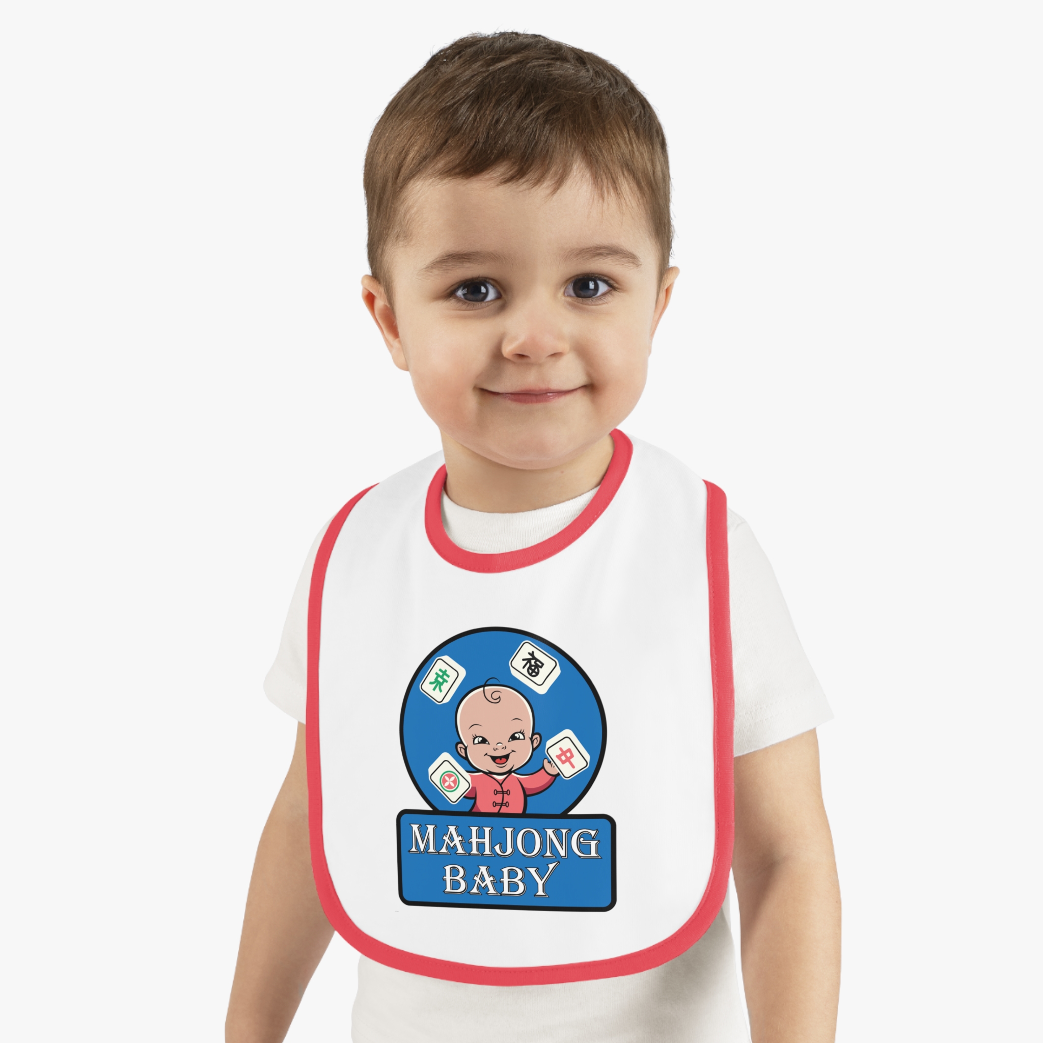 Mahjong Baby Bib | Cute Mahjong Tiles Infant Feeding Bib with Contrast Trim