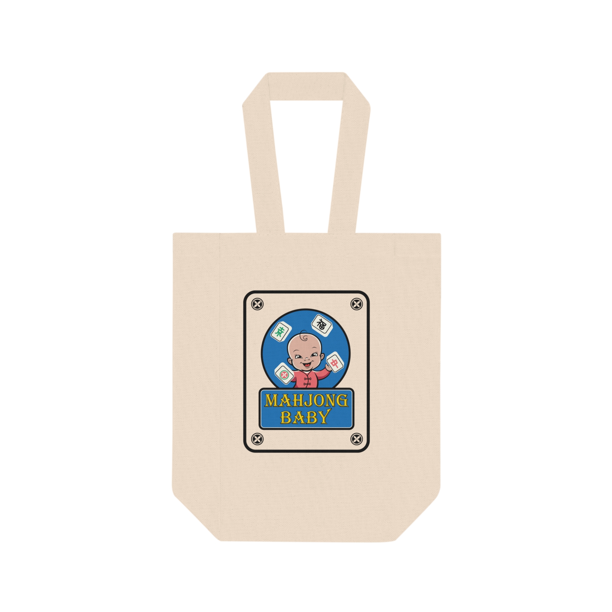 Mahjong Baby Double Wine Tote Bag | Novelty Two-Bottle Canvas Wine Carrier