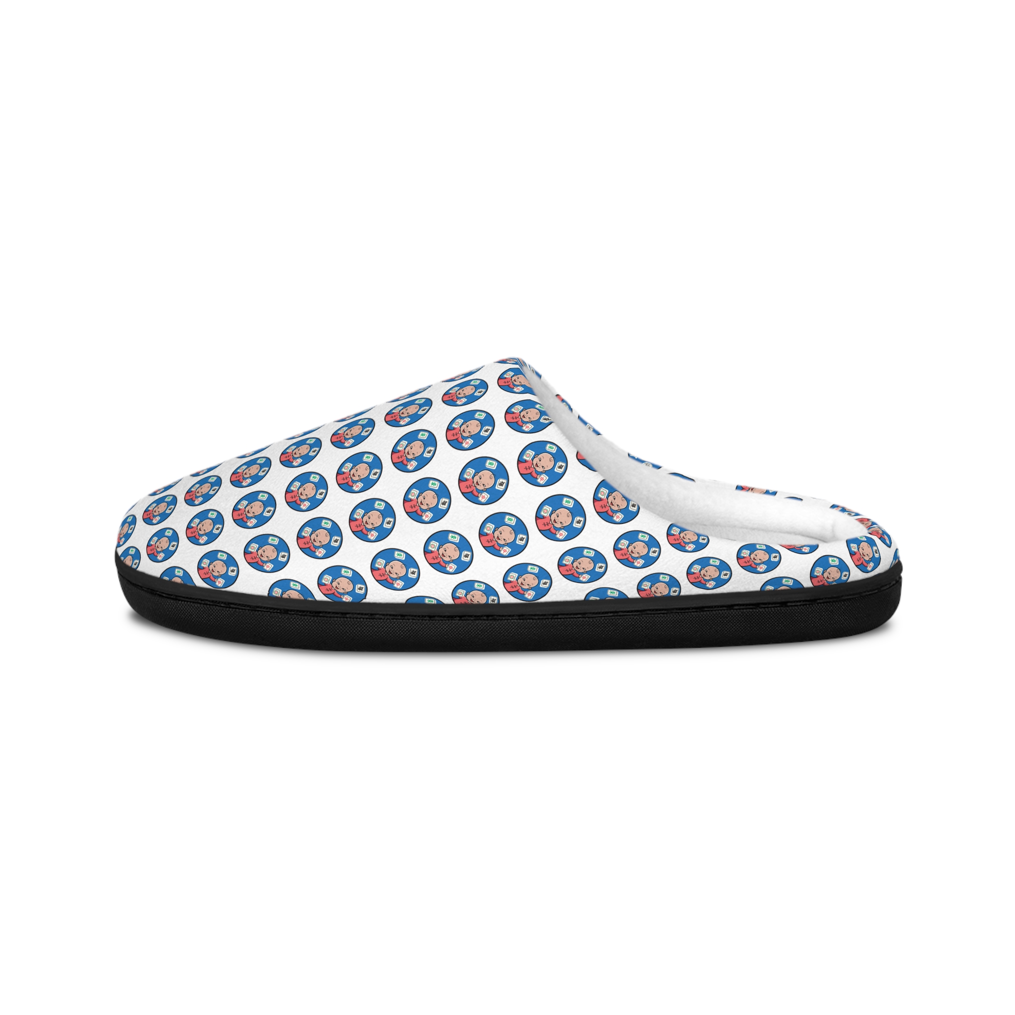 Start your day in soft, cozy comfort with the Mahjong Baby Men’s Indoor Slippers. Designed for warm mornings, relaxed evenings, and everything in between, these plush house slippers feature a repeating Mahjong Baby cartoon face design that adds a fun, cheerful touch to your home routine.