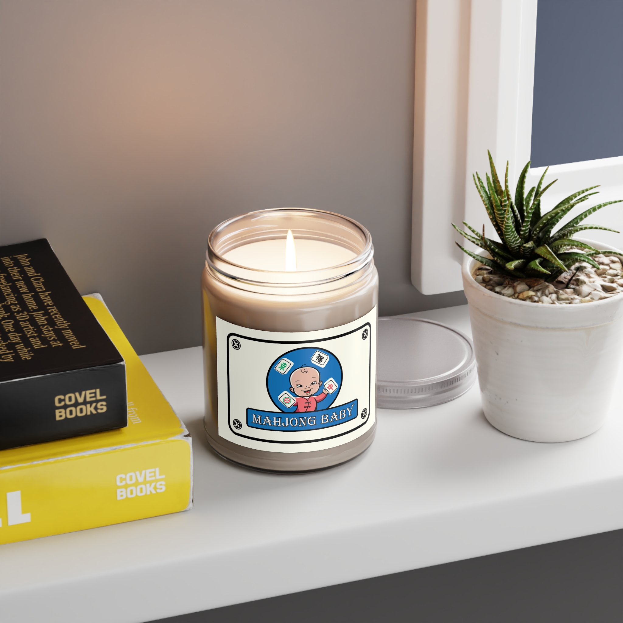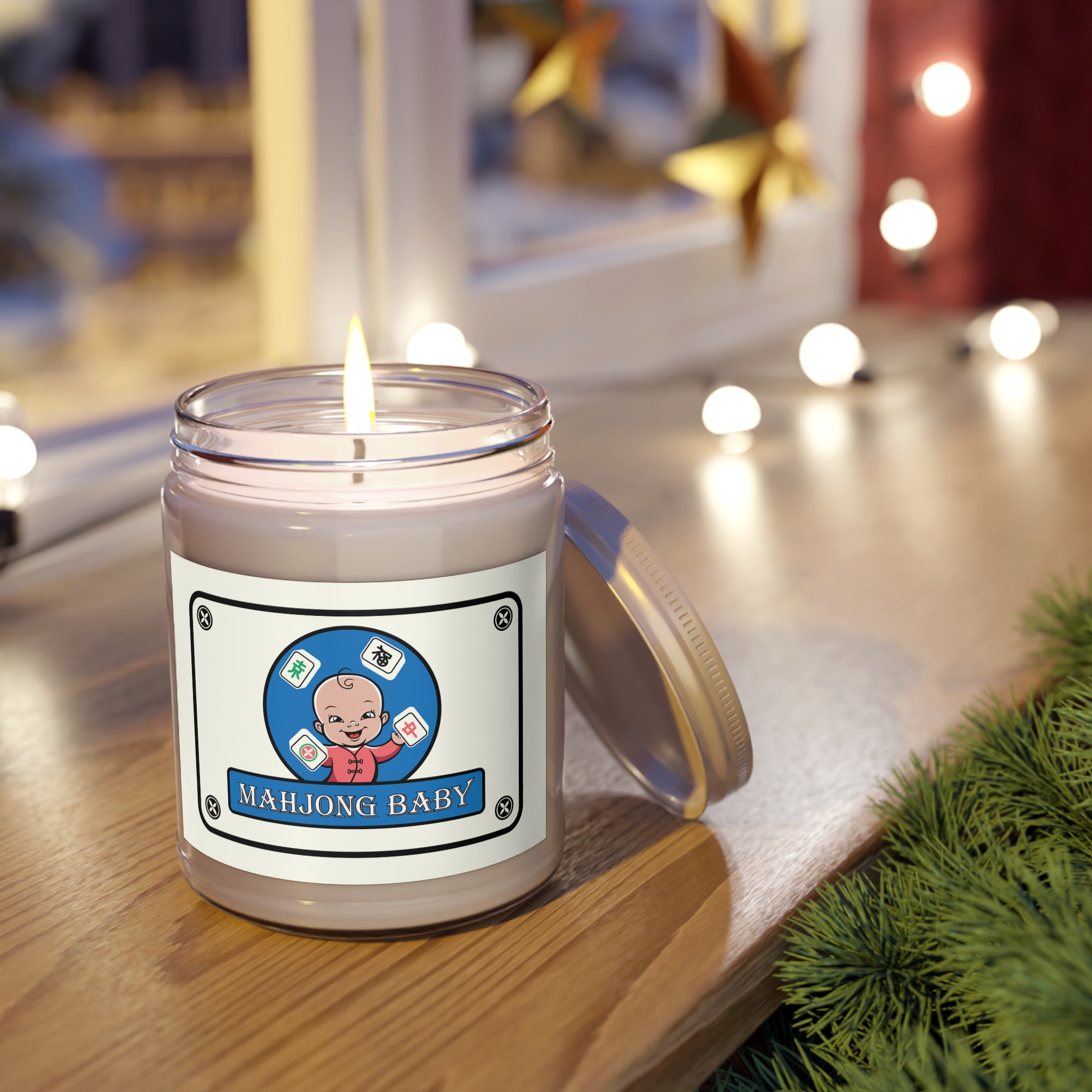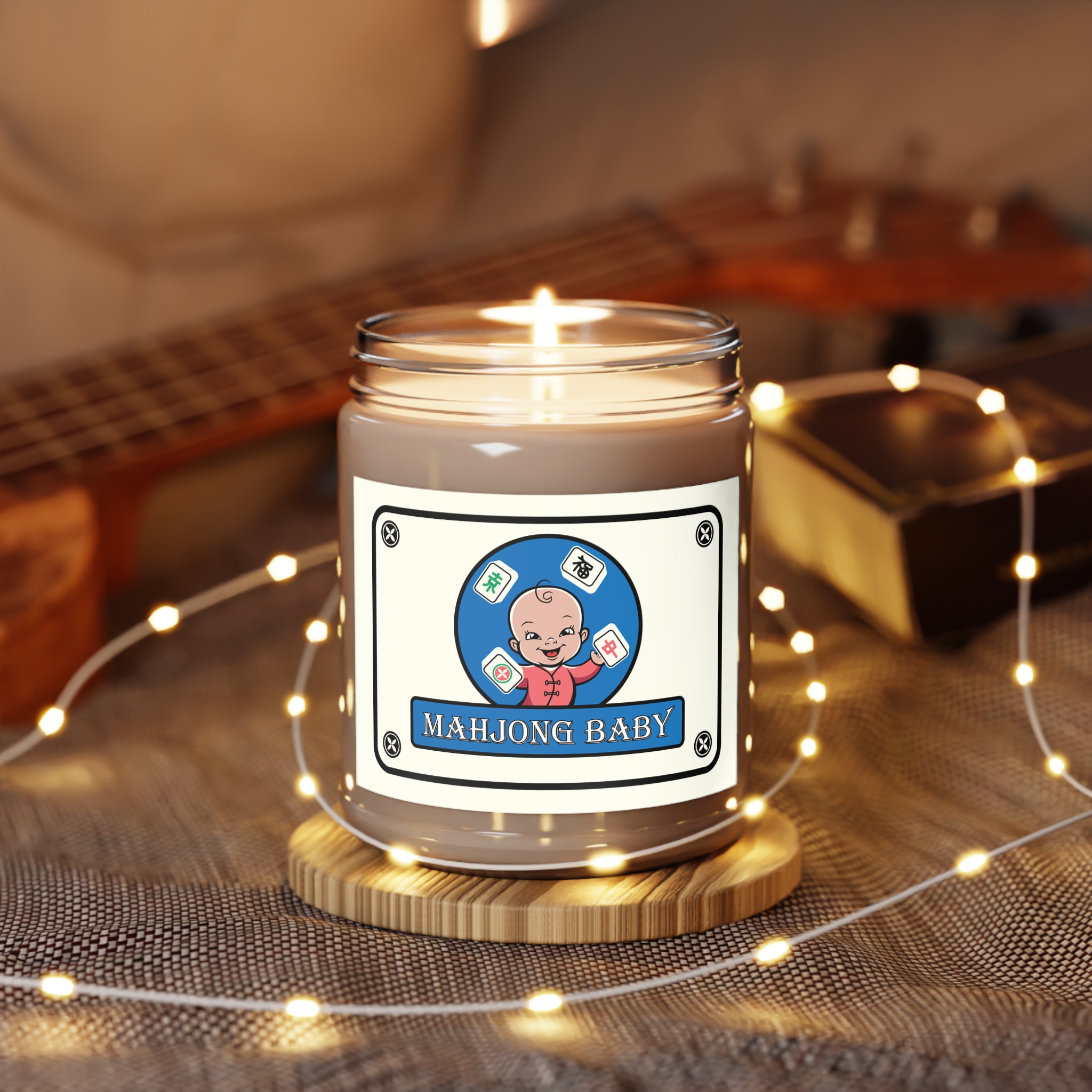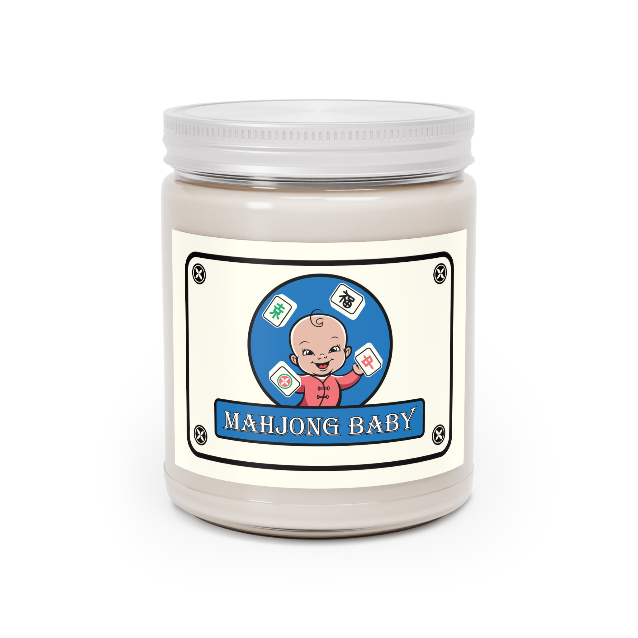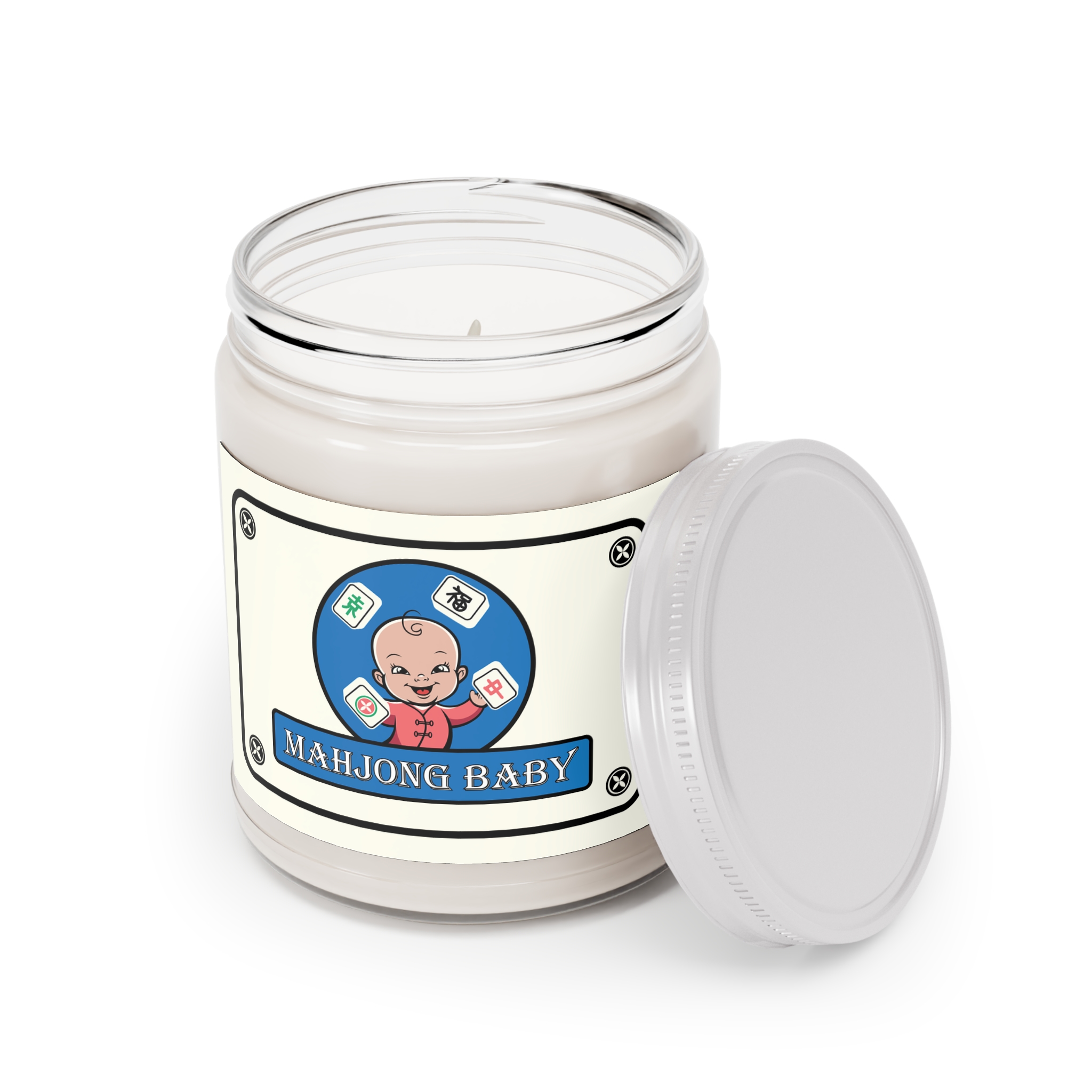 Mahjong Baby Scented Candle – Blue Edition, 9oz | Cozy Soy Candle with Mahjong Baby Label