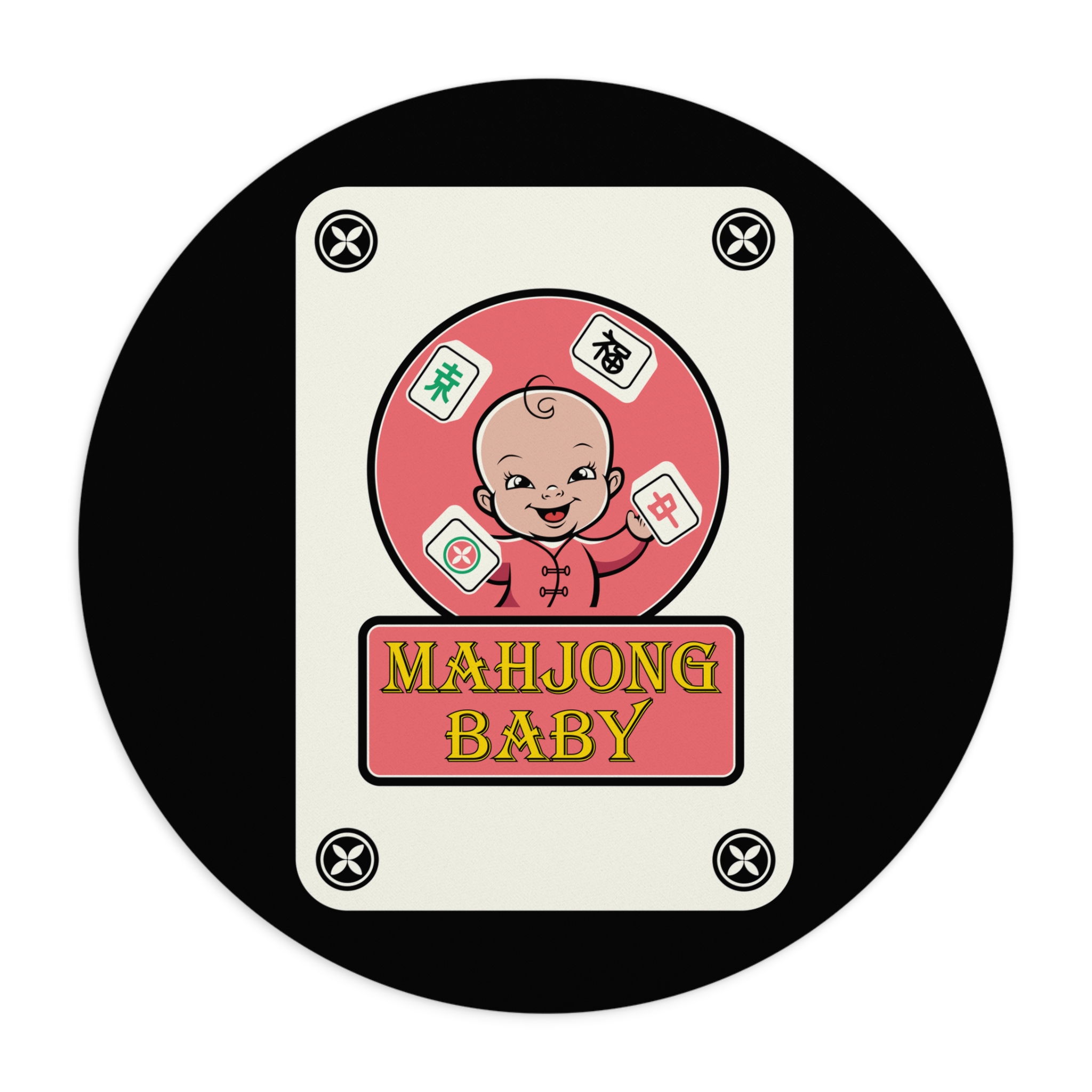 Bright, high-resolution, one-sided print featuring Mahjong Baby retro tile artwork