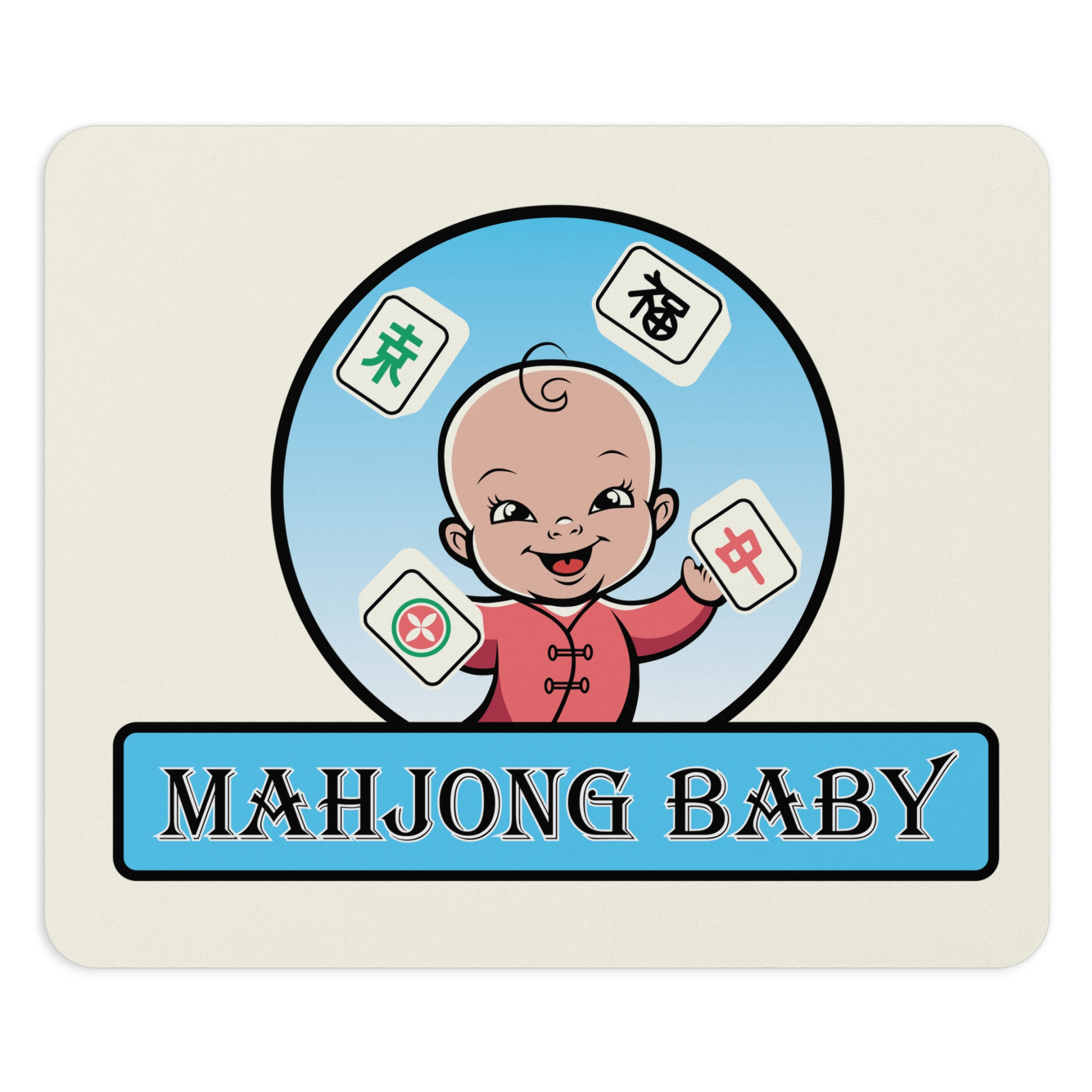 Mahjong Baby Mouse Pad | Baby Blue Retro Tile Desk Mat (Round or Rectangle)