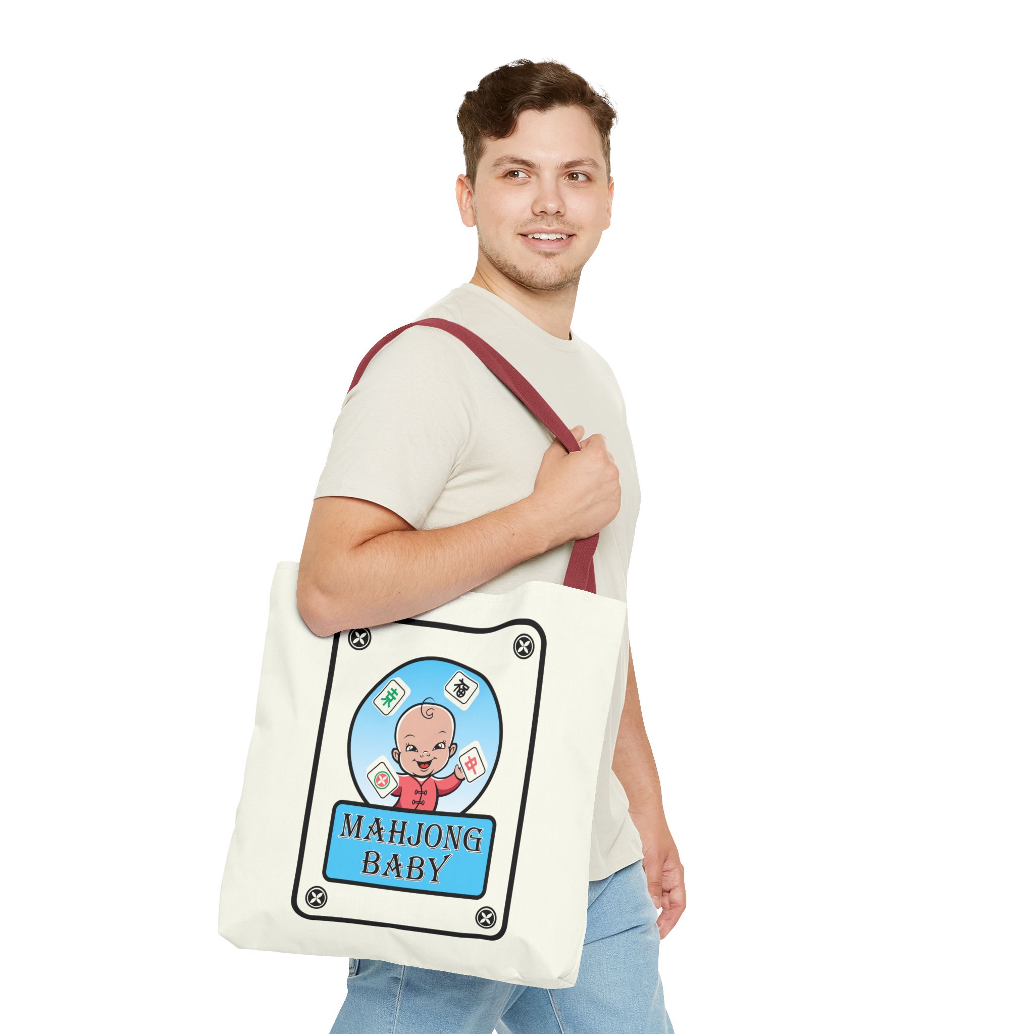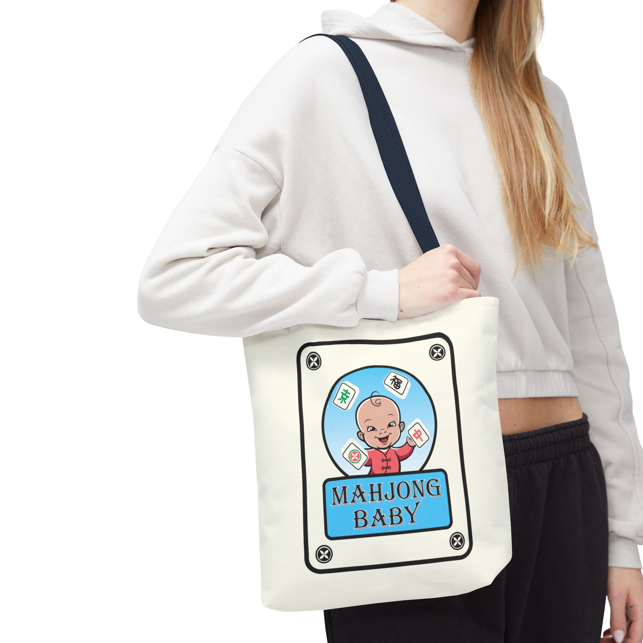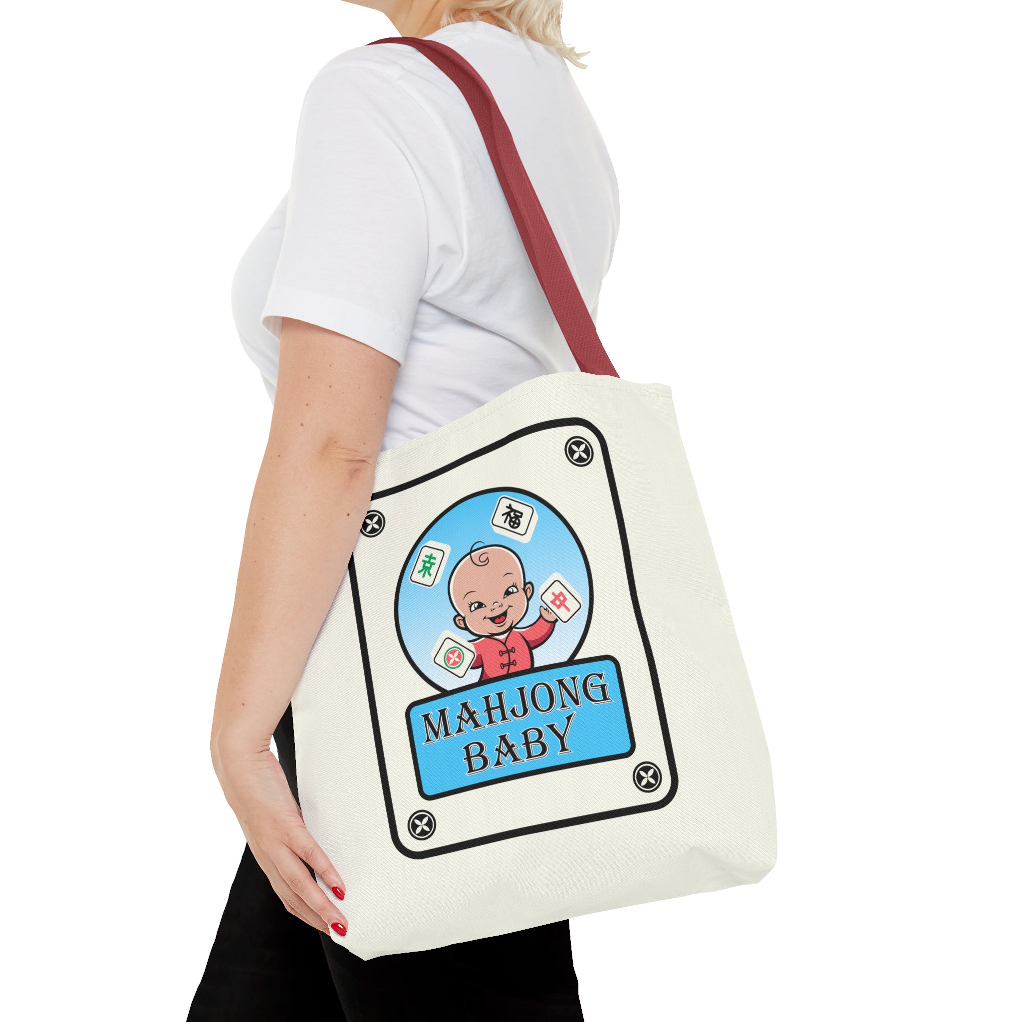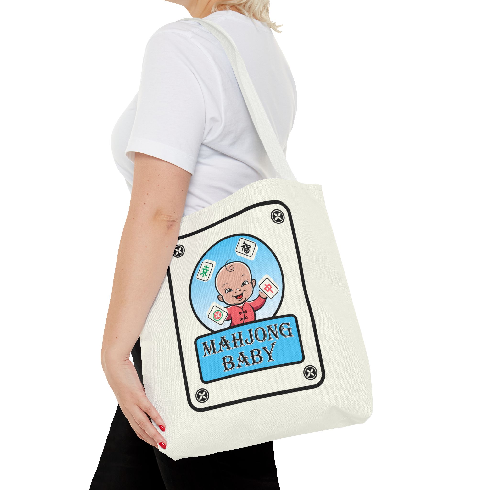 Mahjong Baby Tote Bag | Baby Blue Retro Tile Design (3 Sizes)