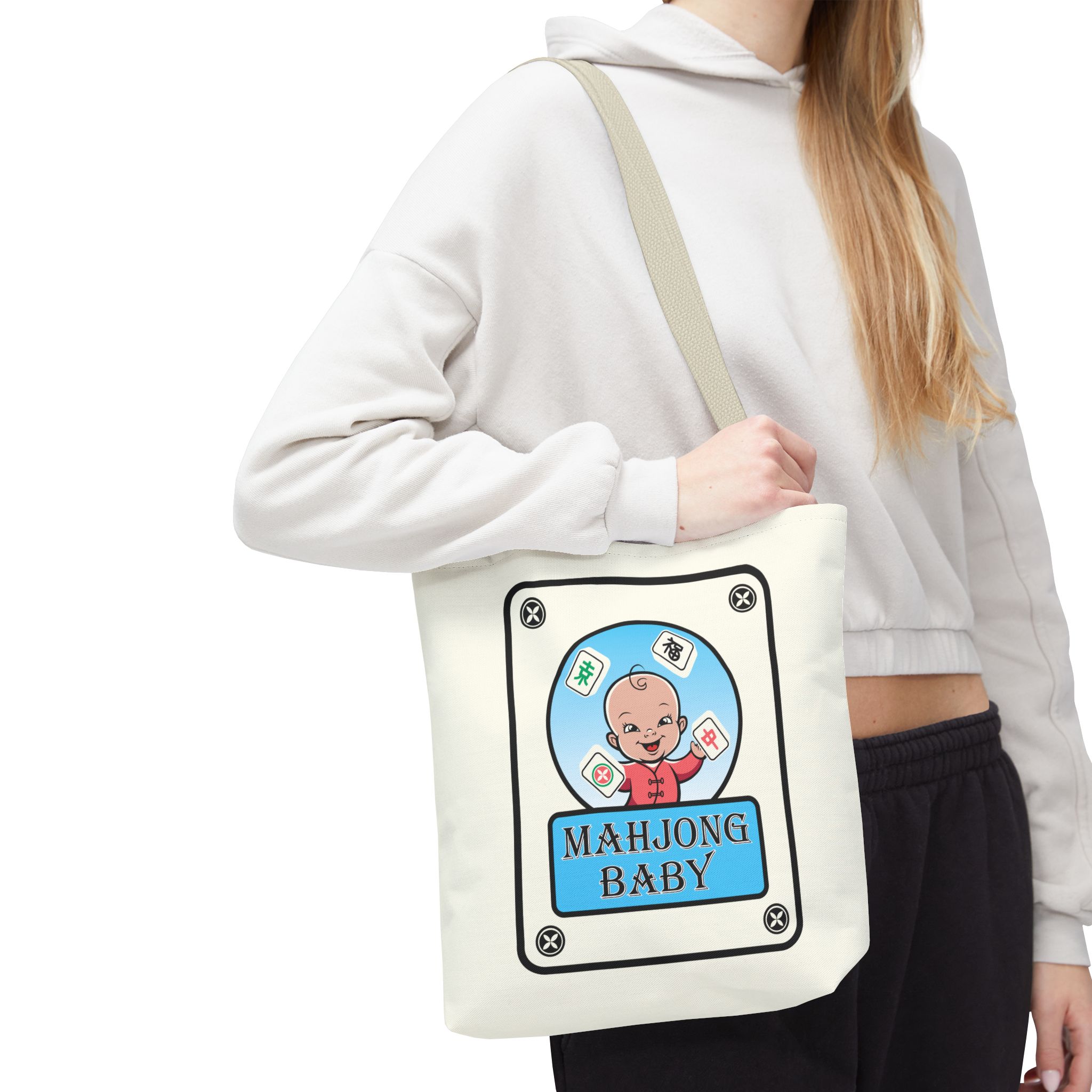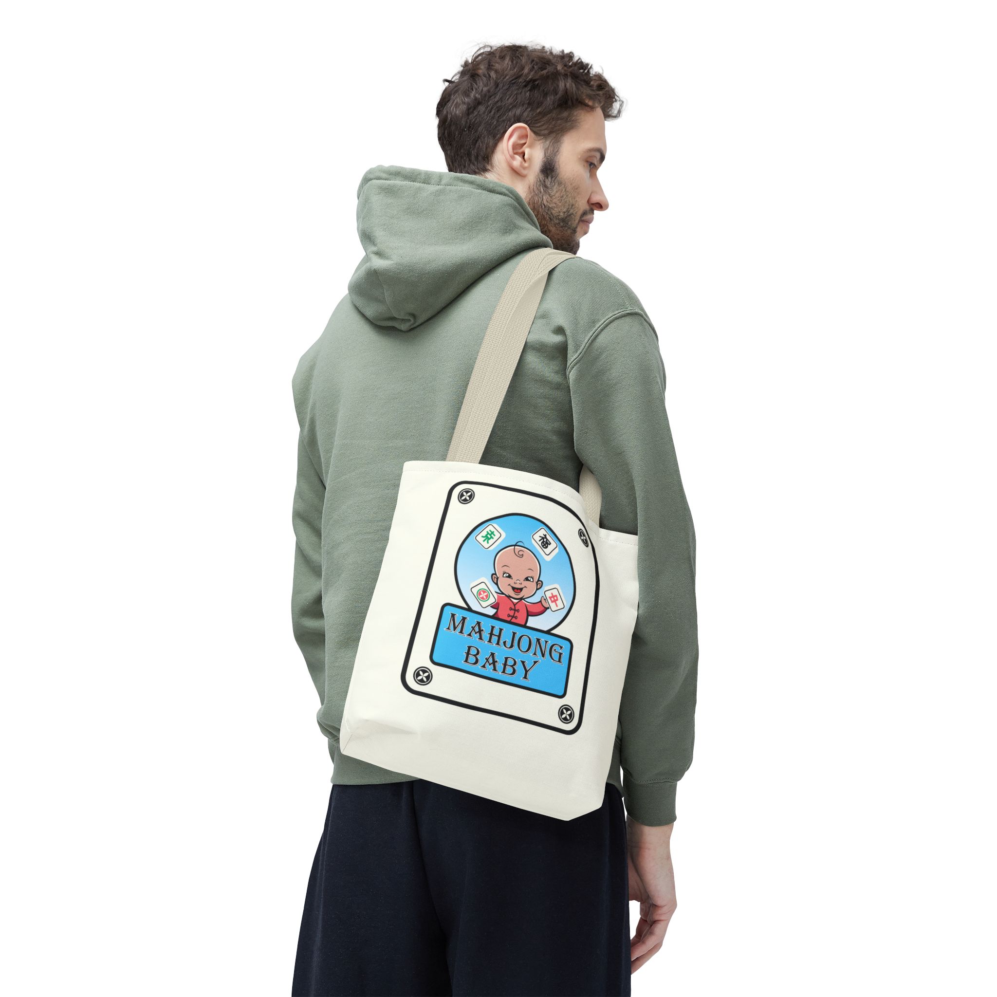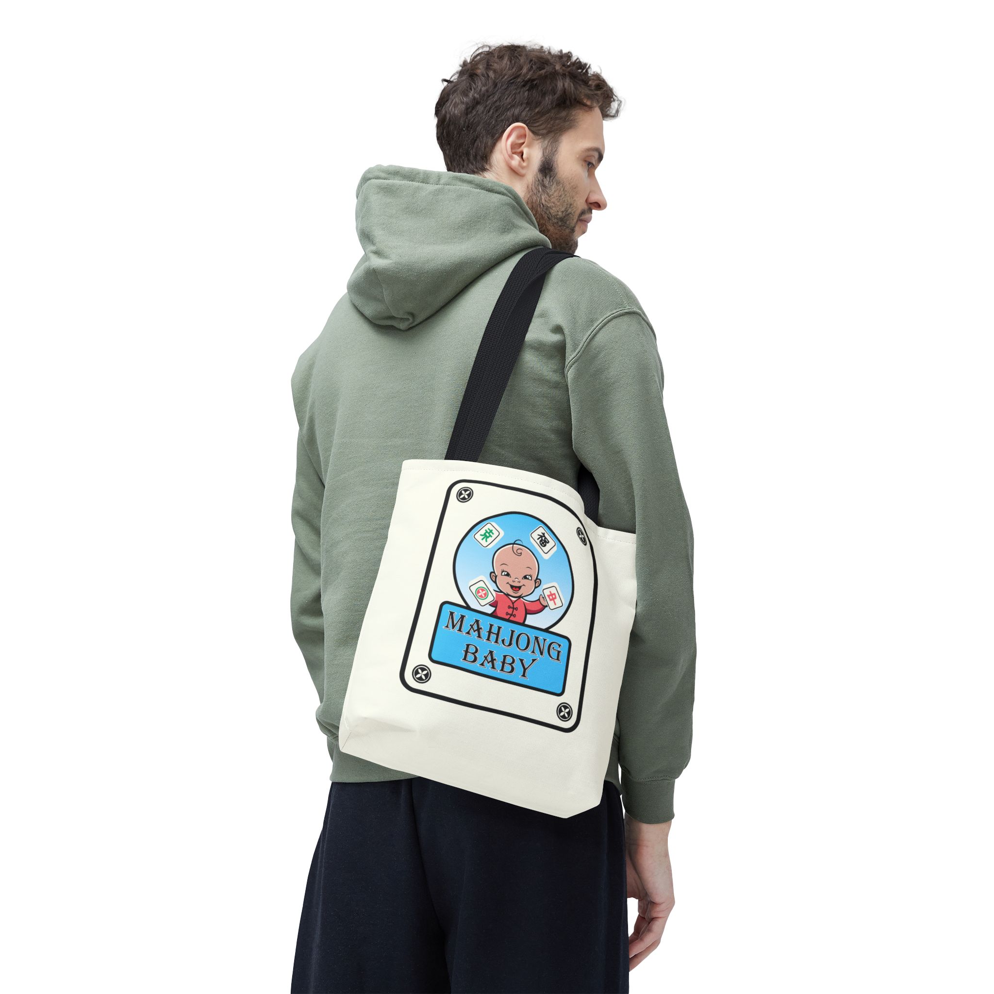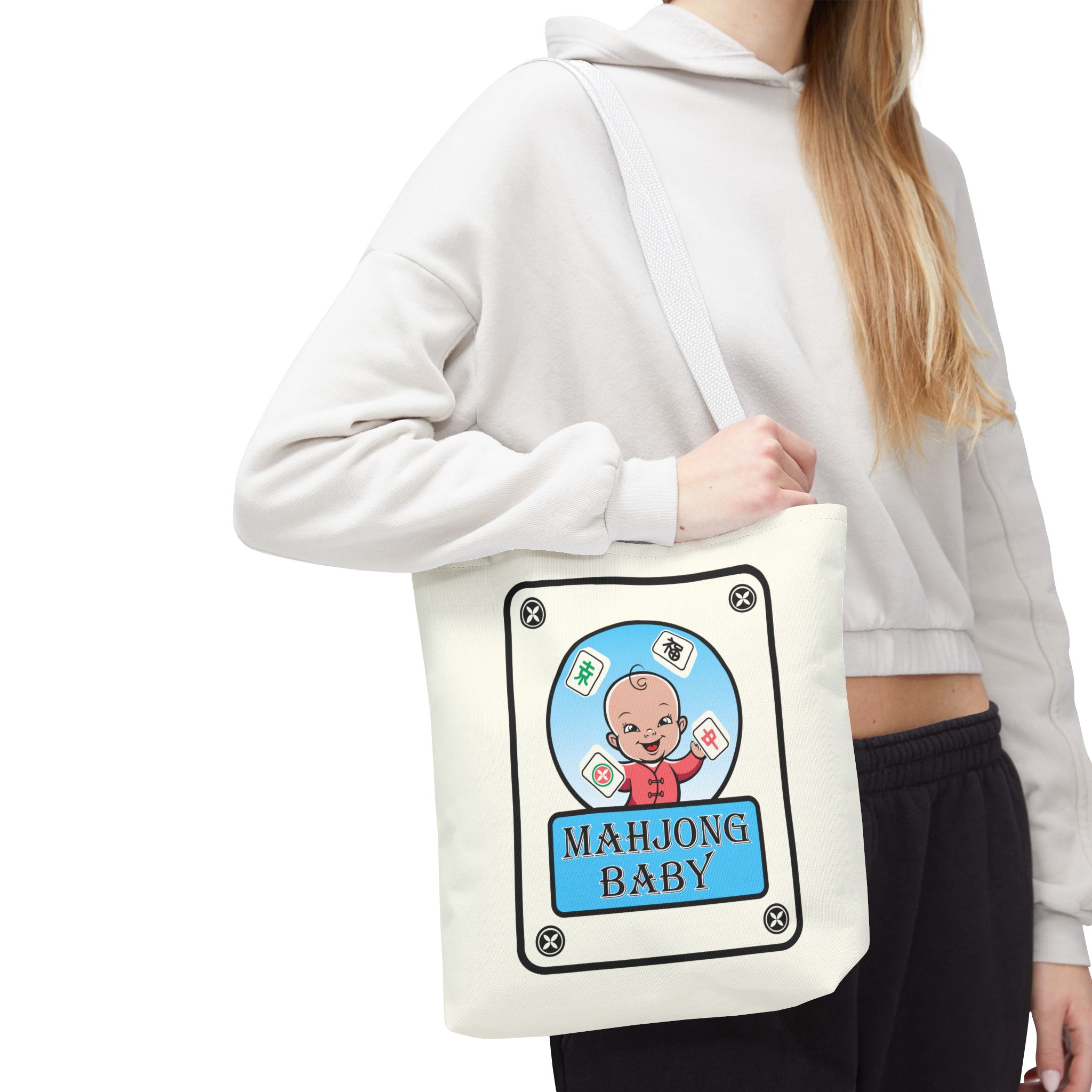Mahjong Baby Tote Bag | Baby Blue Retro Tile Design (3 Sizes)