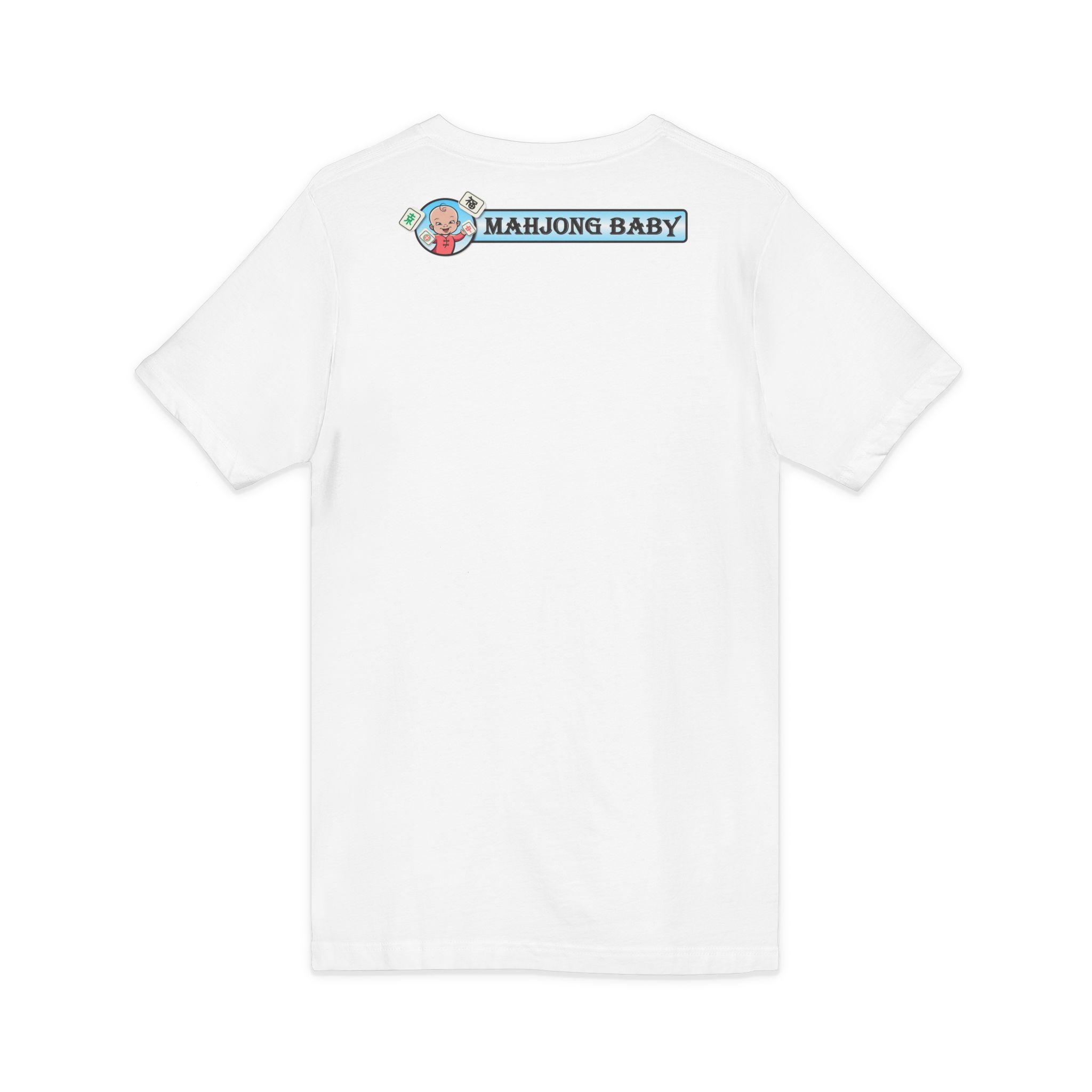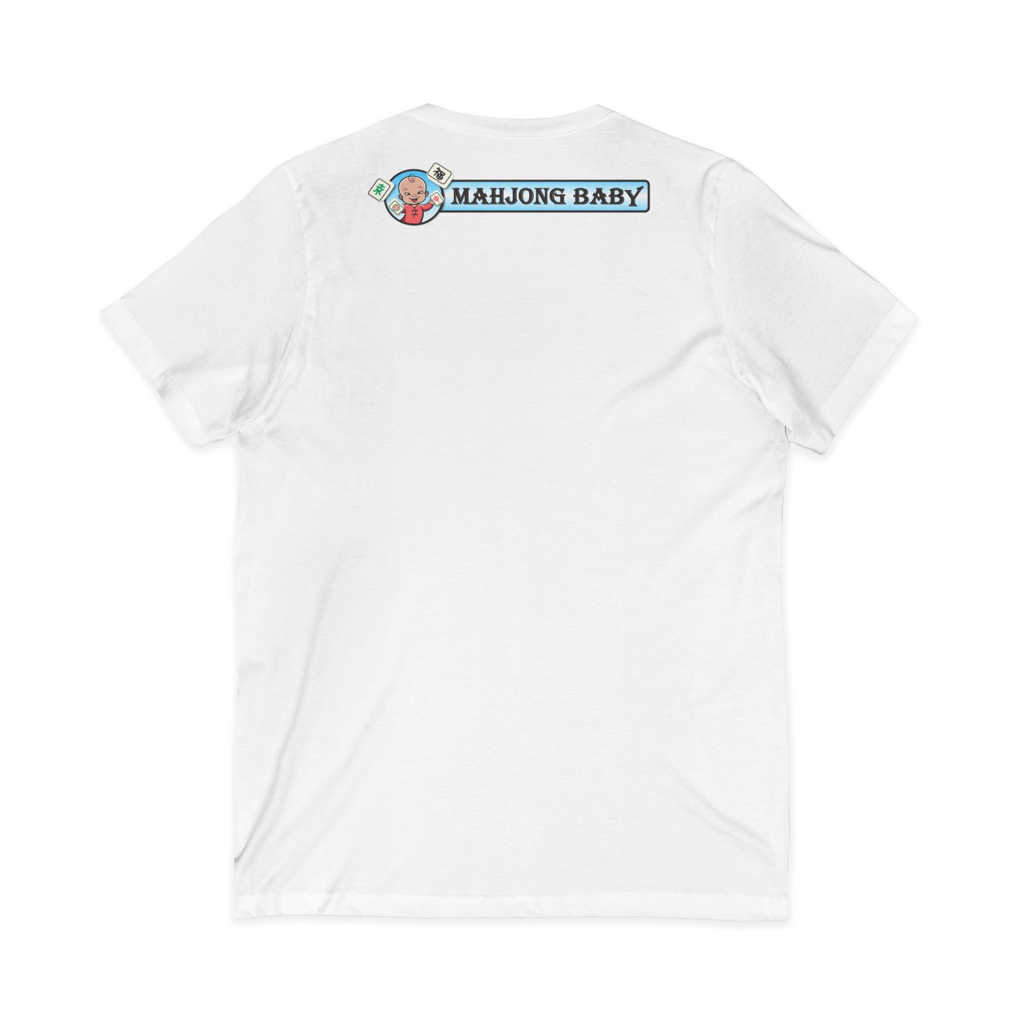 Mahjong Baby V-Neck Tee | “Tiles and Smiles” Retro Mahjong Graphic Shirt