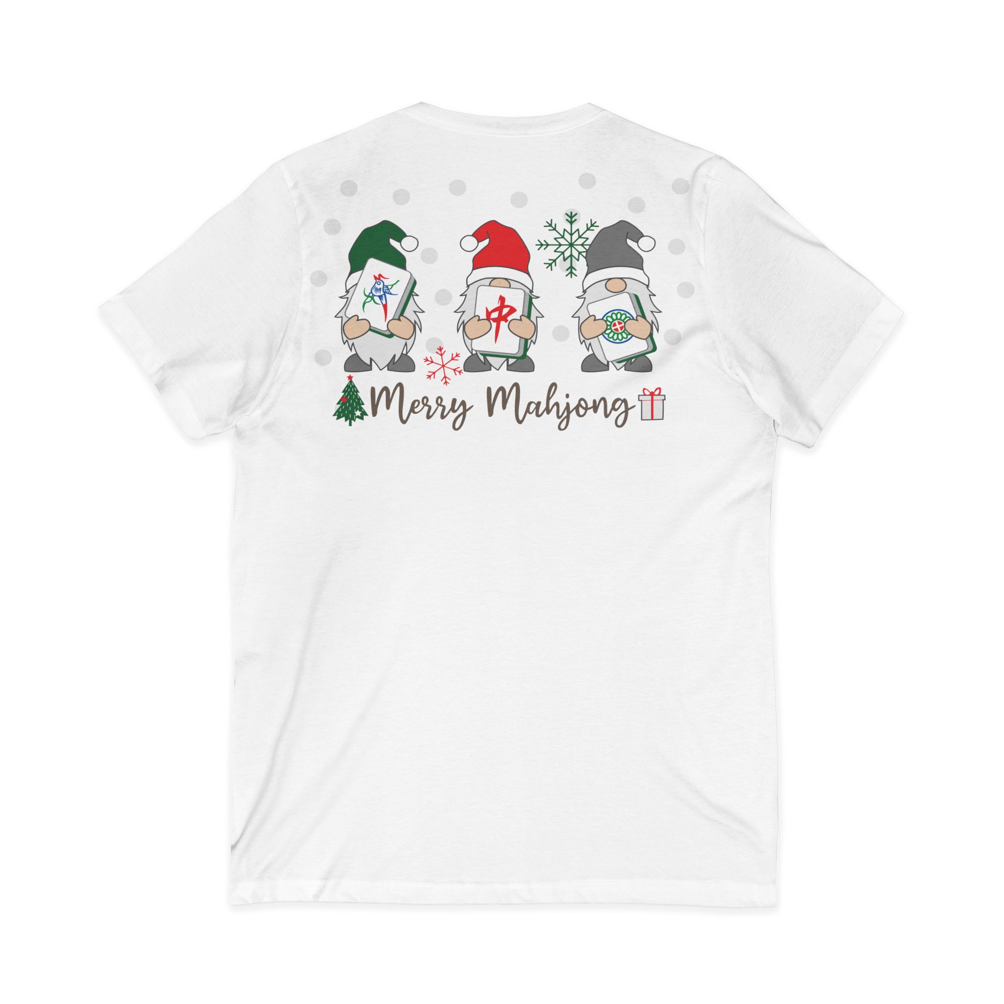 Merry Mahjong Christmas Gnome V-Neck Tee | Festive Holiday Mahjong Shirt