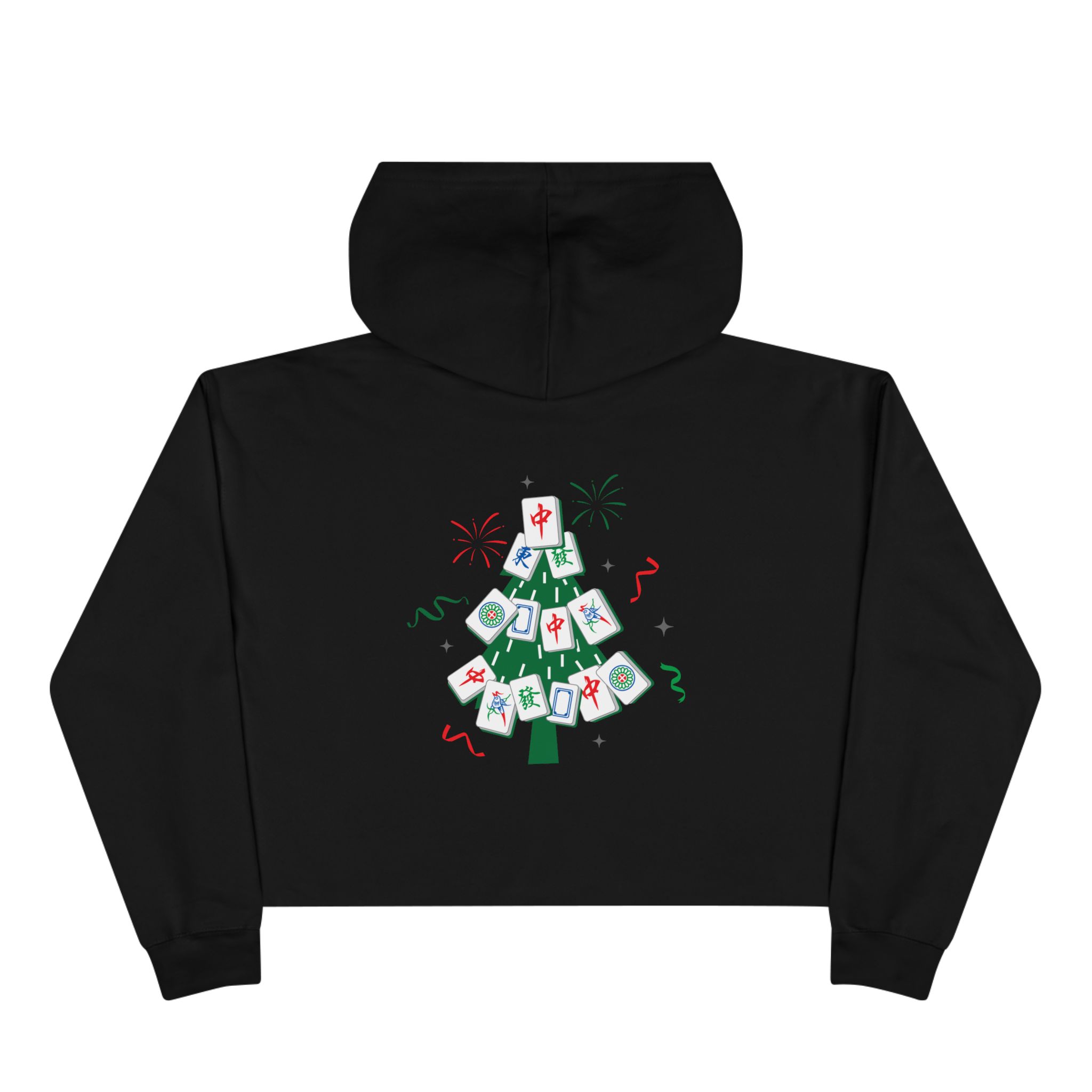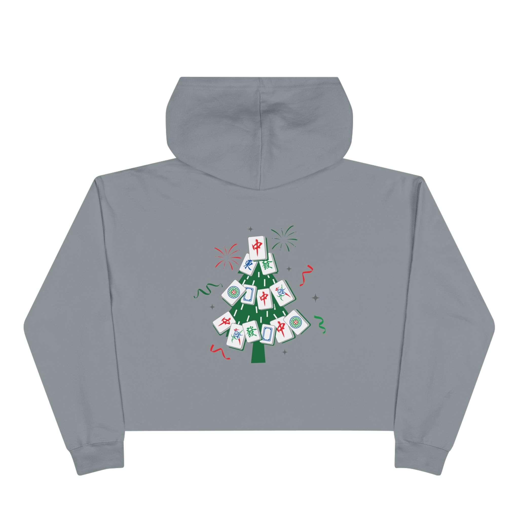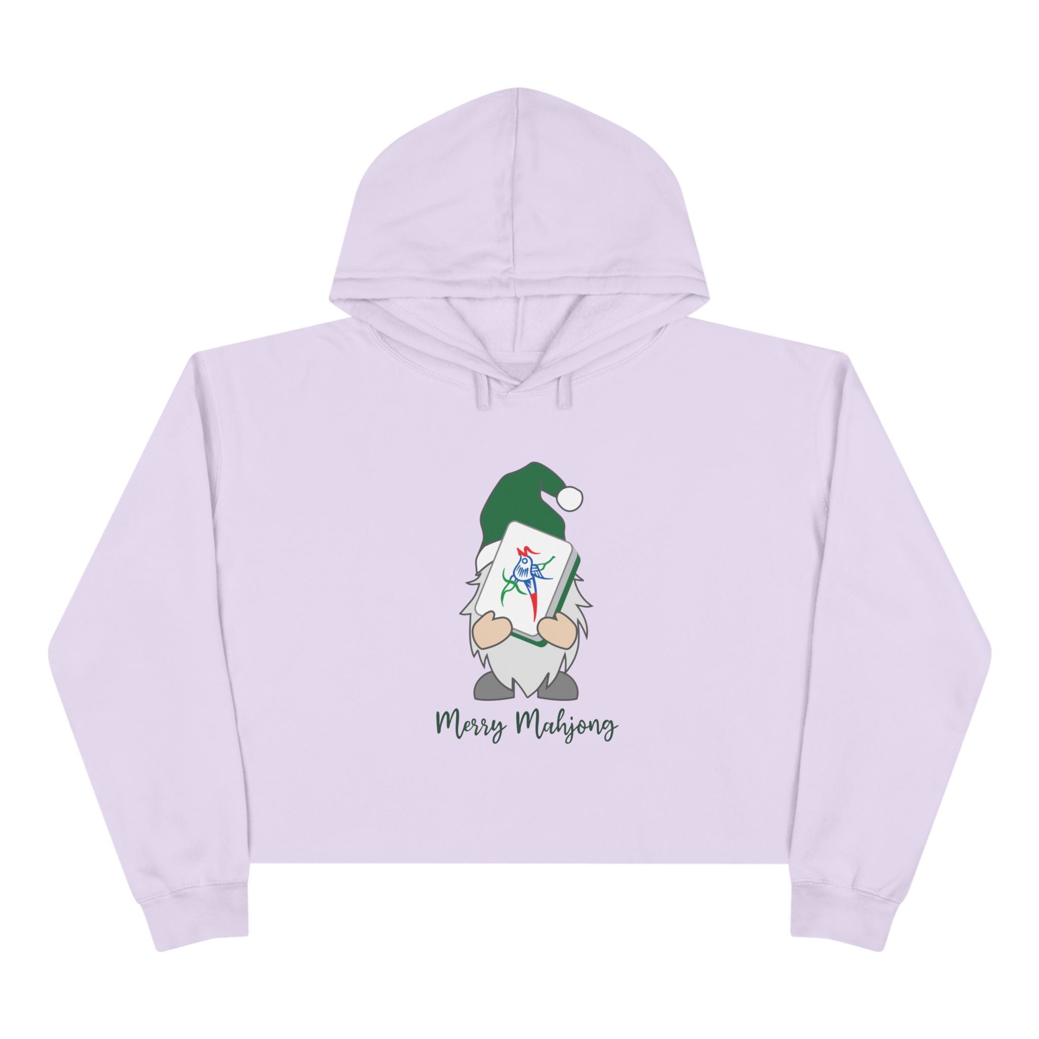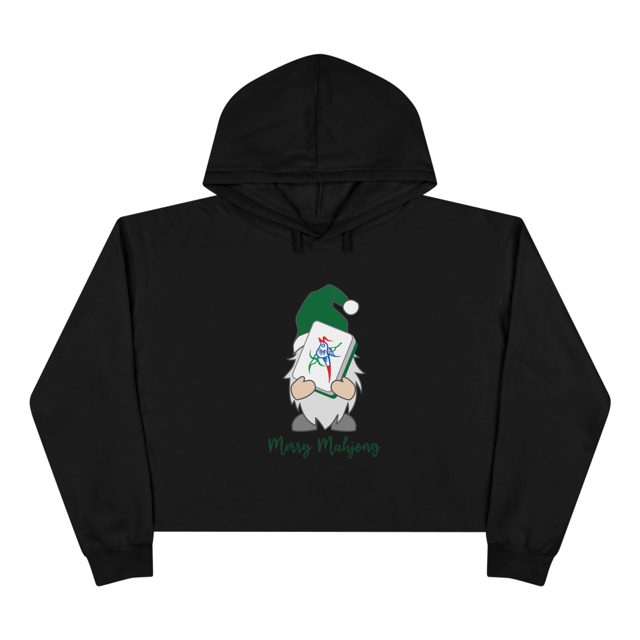 Merry Mahjong Santa Gnome Crop Hoodie | Cute Christmas Holiday Hoodie