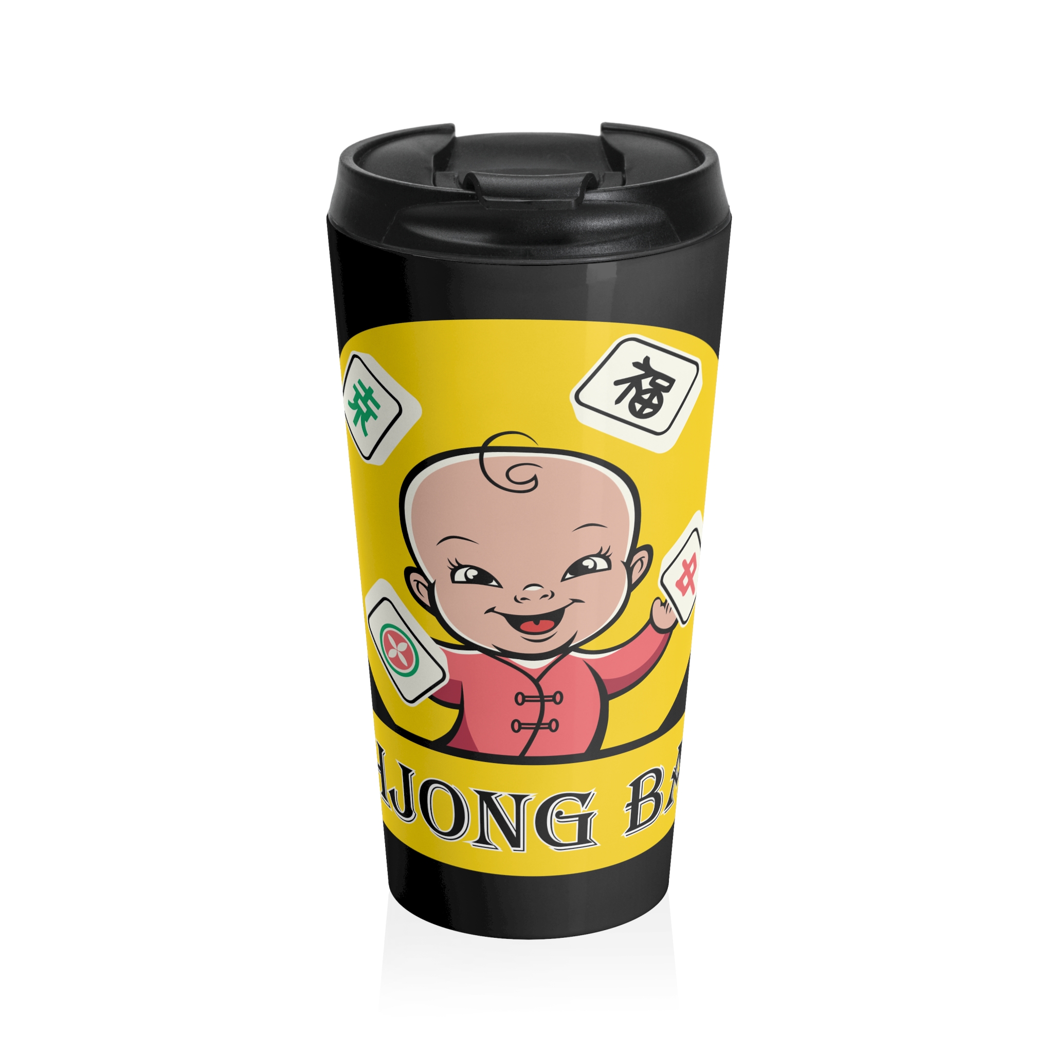 Mahjong Baby Pattern Stainless Steel Travel Mug | Black & Yellow Retro Mahjong Tumbler (15oz)