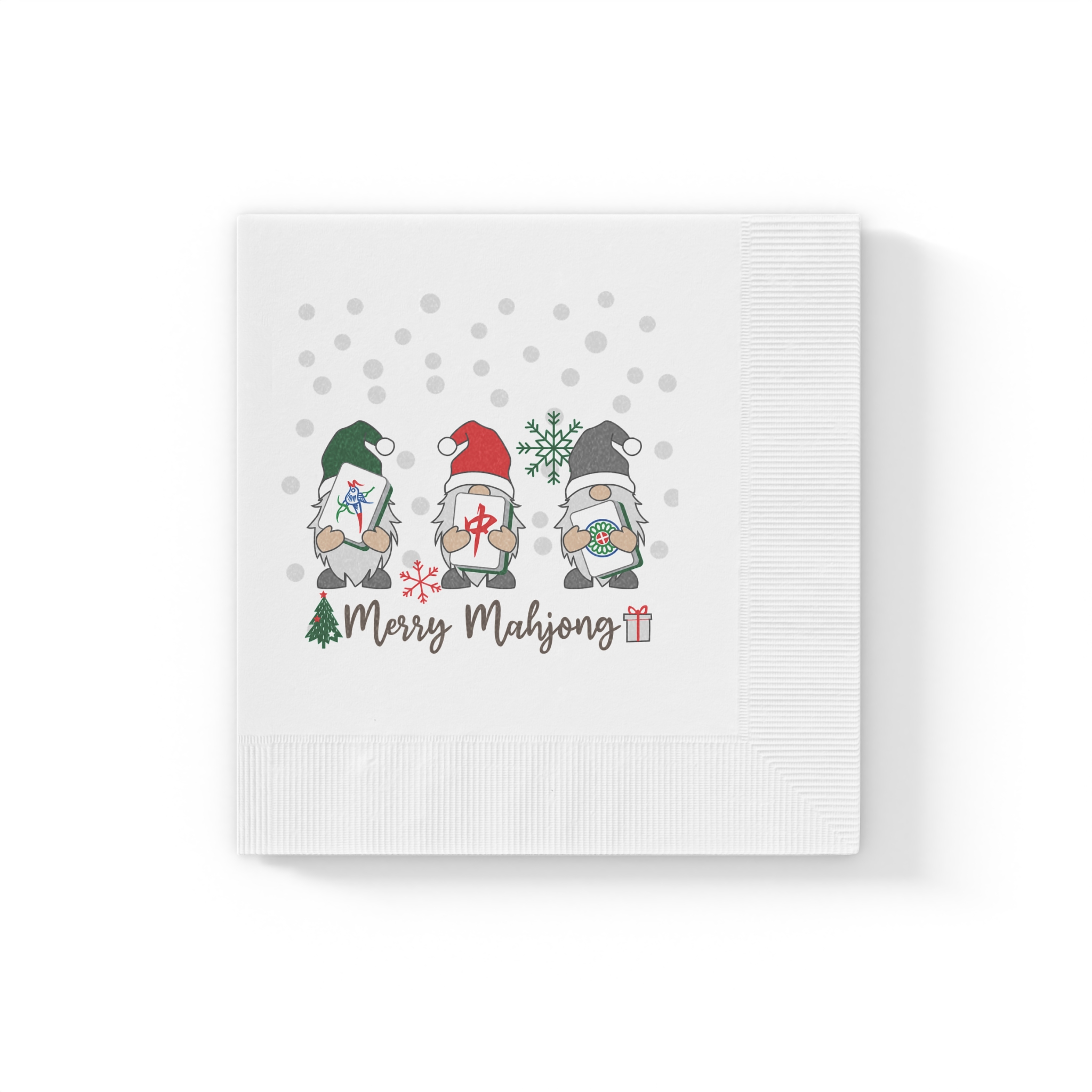 Merry Mahjong Winter Gnome Cocktail Napkins | Holiday Mahjong Party Napkins (50 or 100)