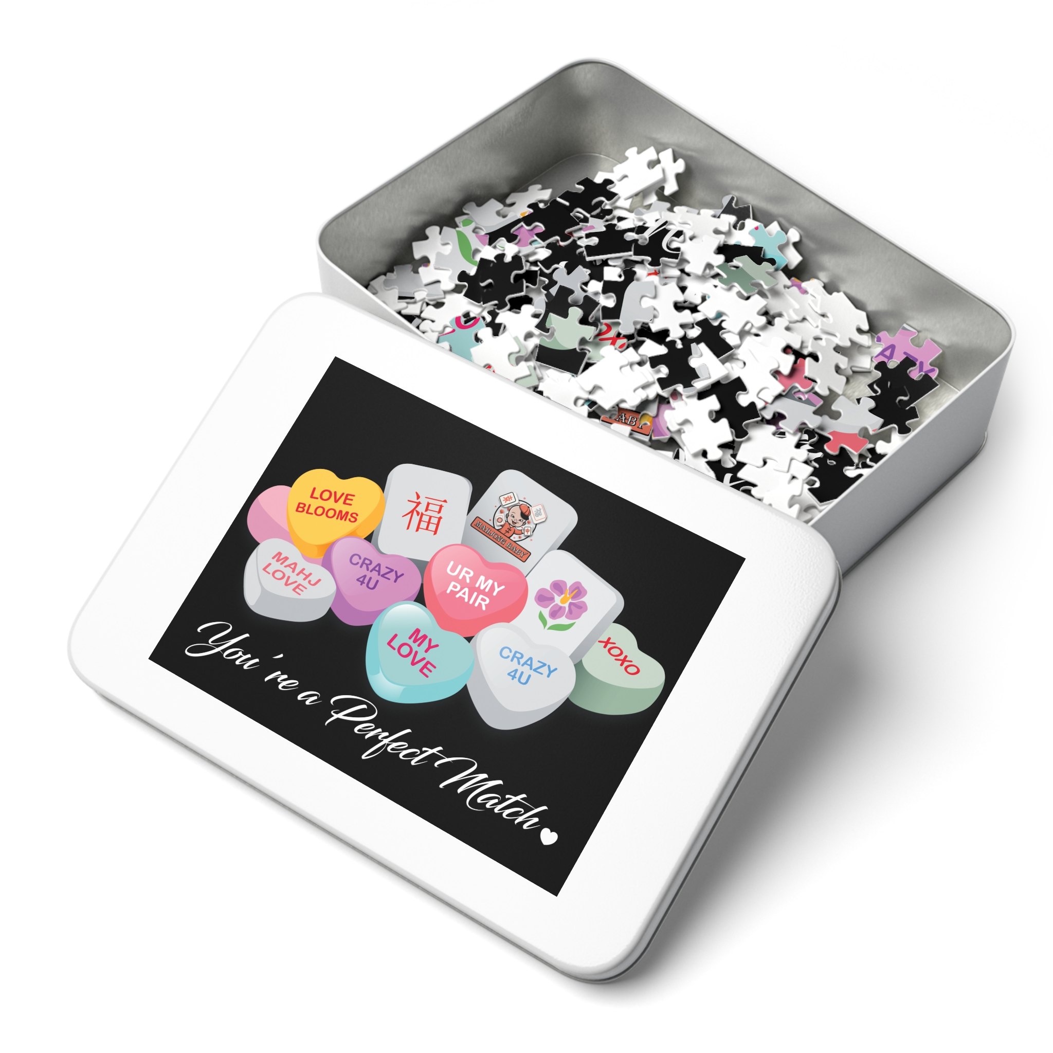 You’re a Perfect Match Puzzle — Conversation Heart Jigsaw with Tin (Romantic Gift)